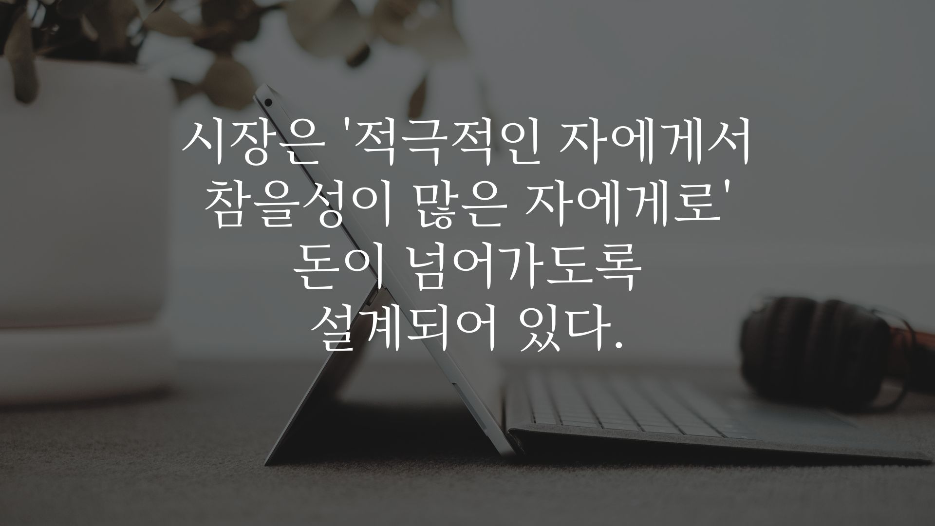 1. 시장은 '적극적인 자에게서 참을성이 많은 자에게로' 돈이 넘어가도록 설계되어 있다.