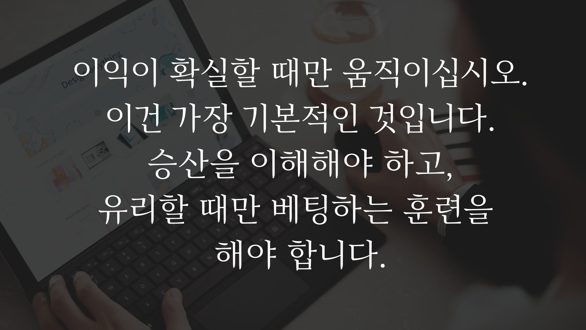 7. 이익이 확실할 때만 움직이십시오, 이건 가장 기본적인것입니다. 승산을 이해해야 하고, 유리할 때만 베팅하는 훈련을 해야 합니다.