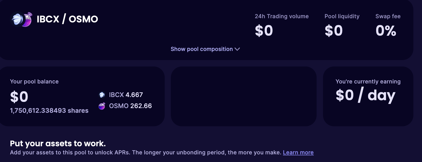 5. OSMO를 IBCX로 스왑 하면 됩니다.