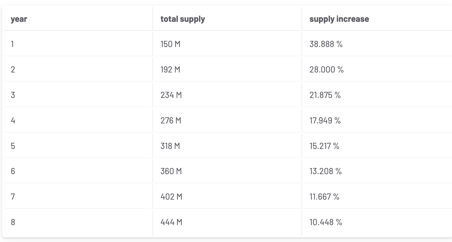 1.2 인플레이션 비율 및 총 발행량(맥시멈)은 아래와 같음.