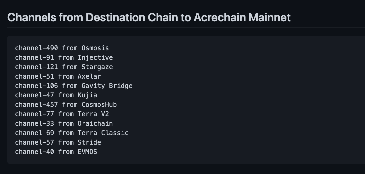 GitHub - SynergyNodes/Acrechain-IBC-Channels: List of IBC Channels between Acrechain and other Cosmos Chains