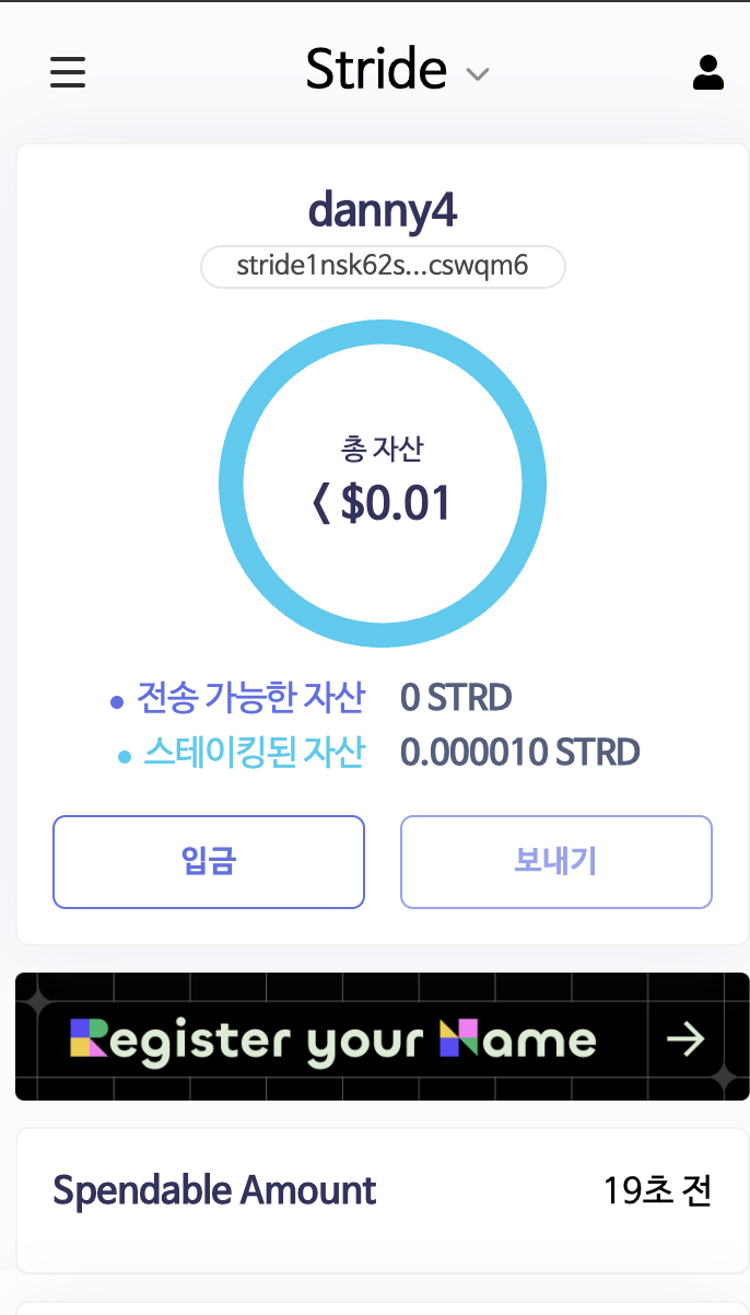 예를 들어 Stride 스테이커라면, Stride 지갑에 Spendable Amount에 CNTO가 들어와 있을겁니다.