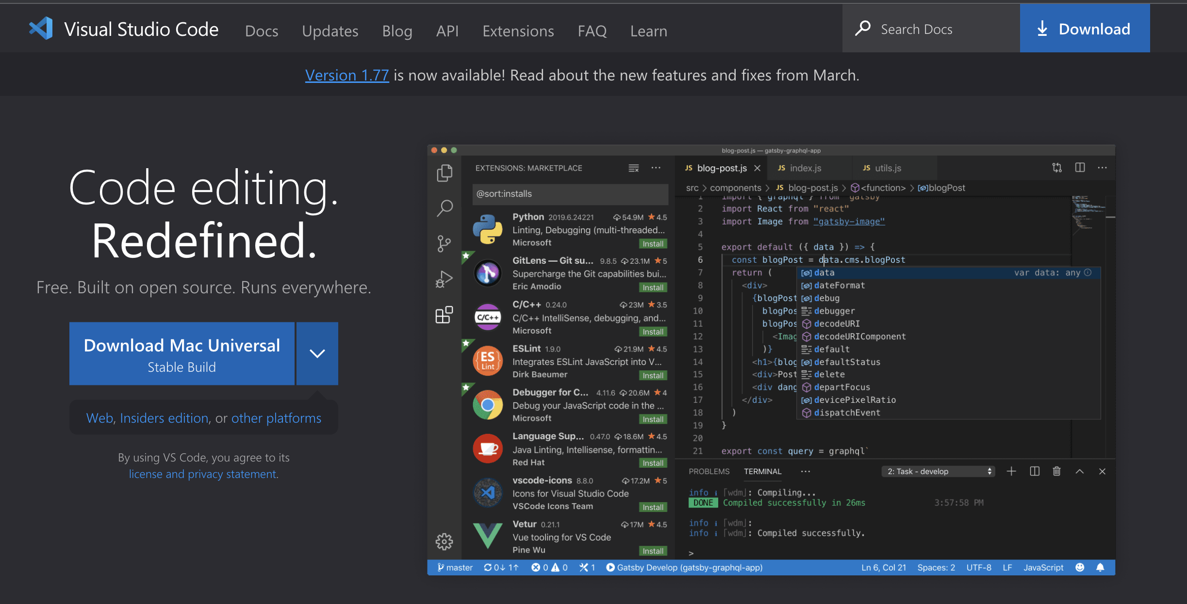Visual Studio Code is a code editor redefined and optimized for building and debugging modern web and cloud applications. Visual Studio Code is free and available on your favorite platform - Linux, macOS, and Windows.