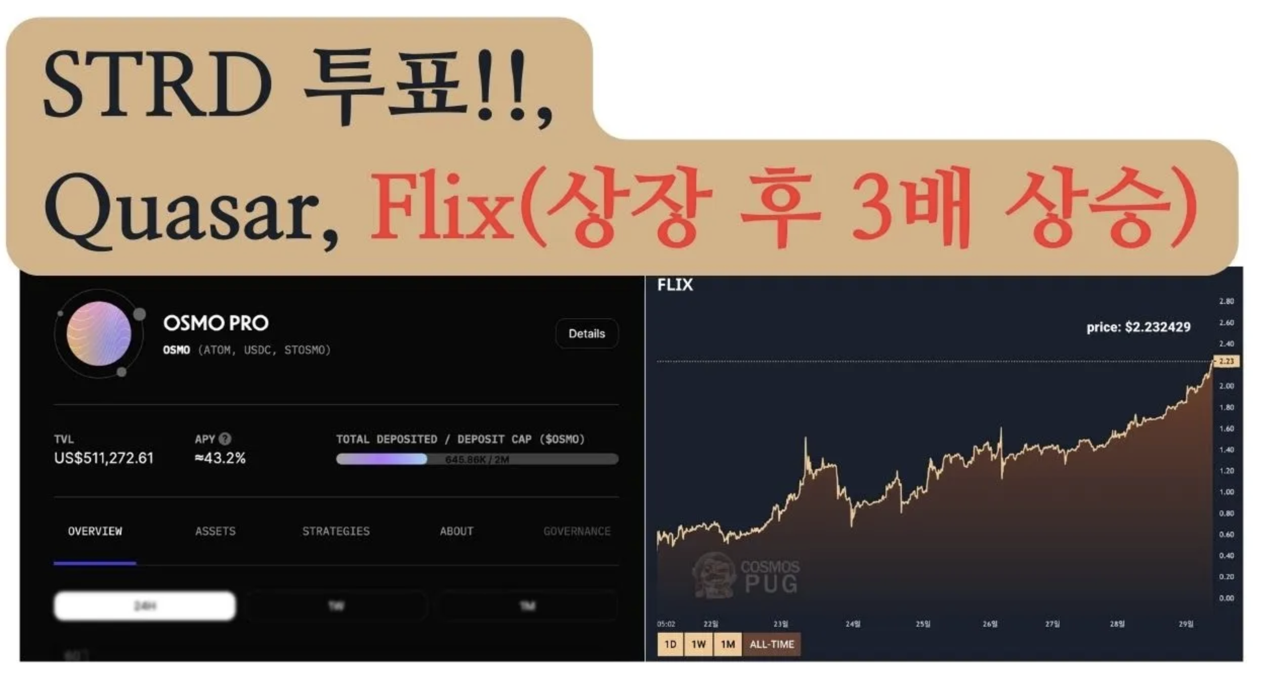 암호화폐 및 경제/코스모스생태계 STRD, Quasar, FLix 프로젝트 간단리뷰 by Danny_Kim 2023. 5. 1. 🔑🔑🔑 추천 링크 🔑🔑🔑 쉽게 이해하고 따라하는 블록체인 마스터 과정 https://youtu.be/UDEPux9Ekn8 STRD 제안관련 450,000 ATOM 사용(약 70억원정도) https://forum.cosmos.network/t/proposal-794-vote-onchain-stride-to-join-atom-economic-zone-and-adopt-ics/10418/64 공유하기 게시글 관리 대니월드(크립토 세상) 저작자표시 비영리 변경금지 (새창열림) 🔑🔑🔑 추천 링크 🔑🔑🔑 쉽게 이해하고 따라하는 블록체인 마스터 과정 /a> 관련 컨텐츠 코스모스 아톰(ATOM) 스테이킹 방법 코스모스 IBC Vault 퀘이사(Quasar) 프로젝트 분석 코스모스 유동성 스테이킹 STRD, 뉴트론, 향후 방향성 코스모스 DAM(탈중앙화된 자산관리사?) Quasar(퀘이사) 댓글