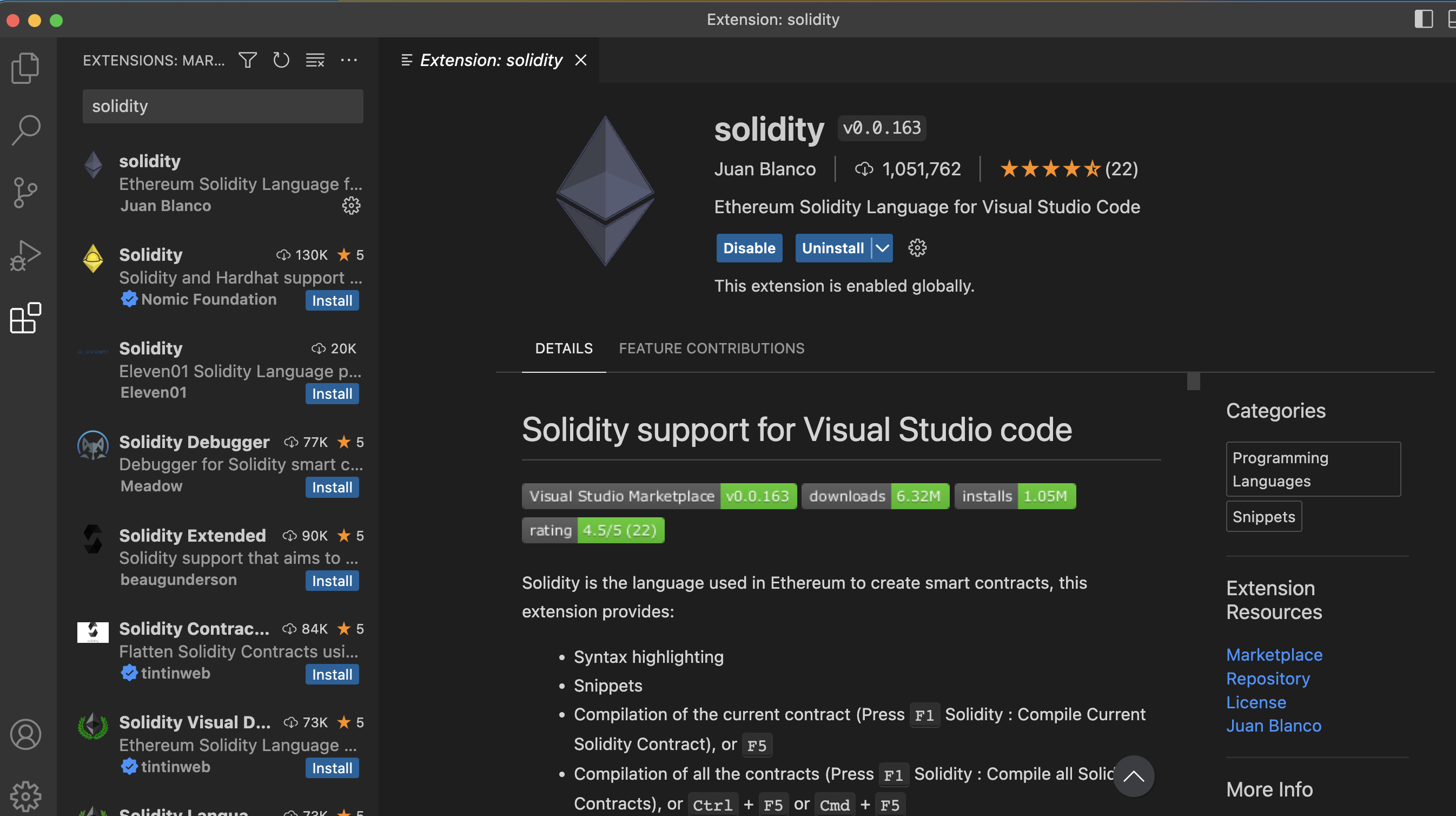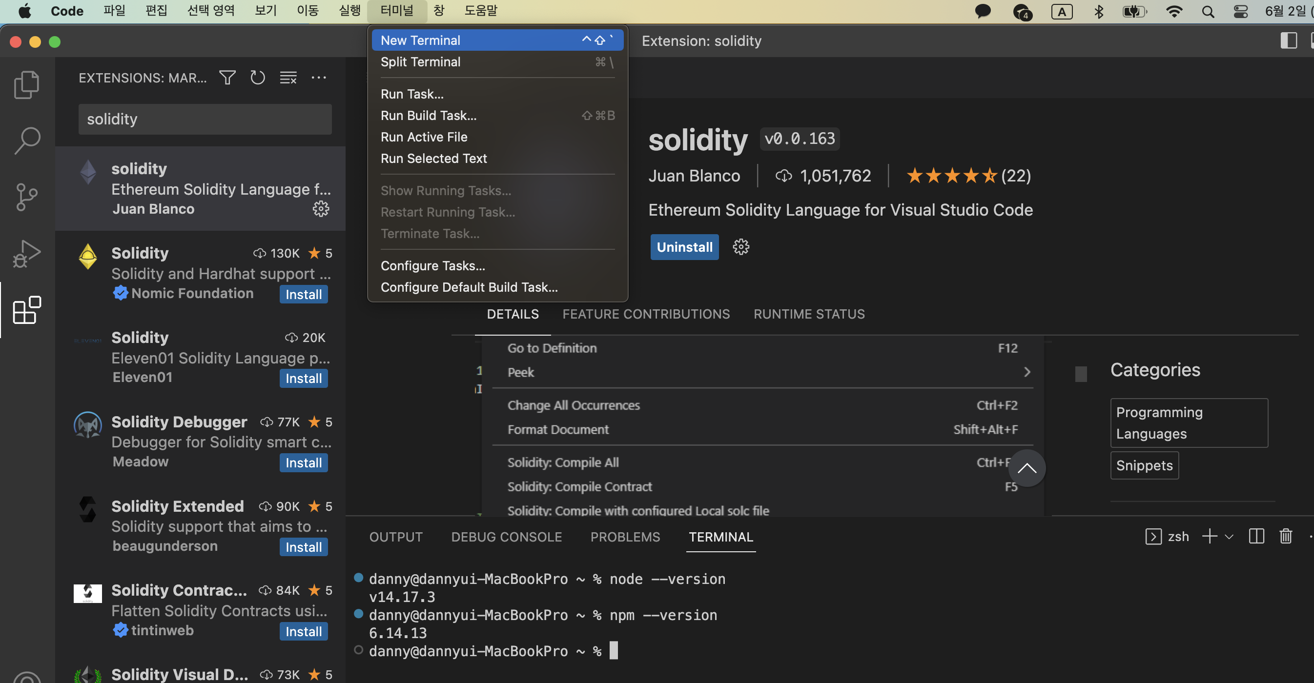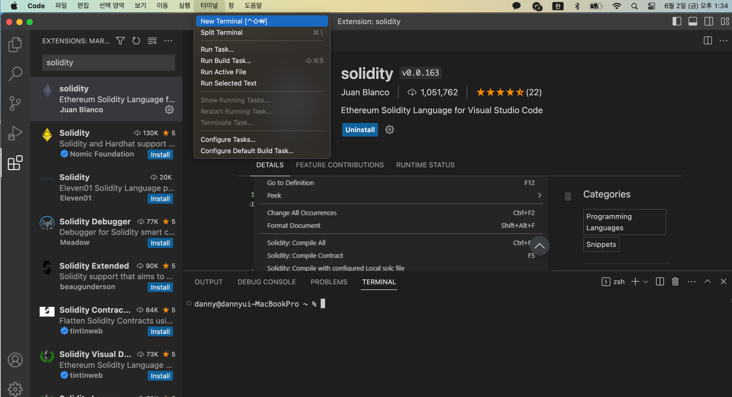 1. VSCode Extension에서 solidity 검색 후 첫번째 패키지 설치