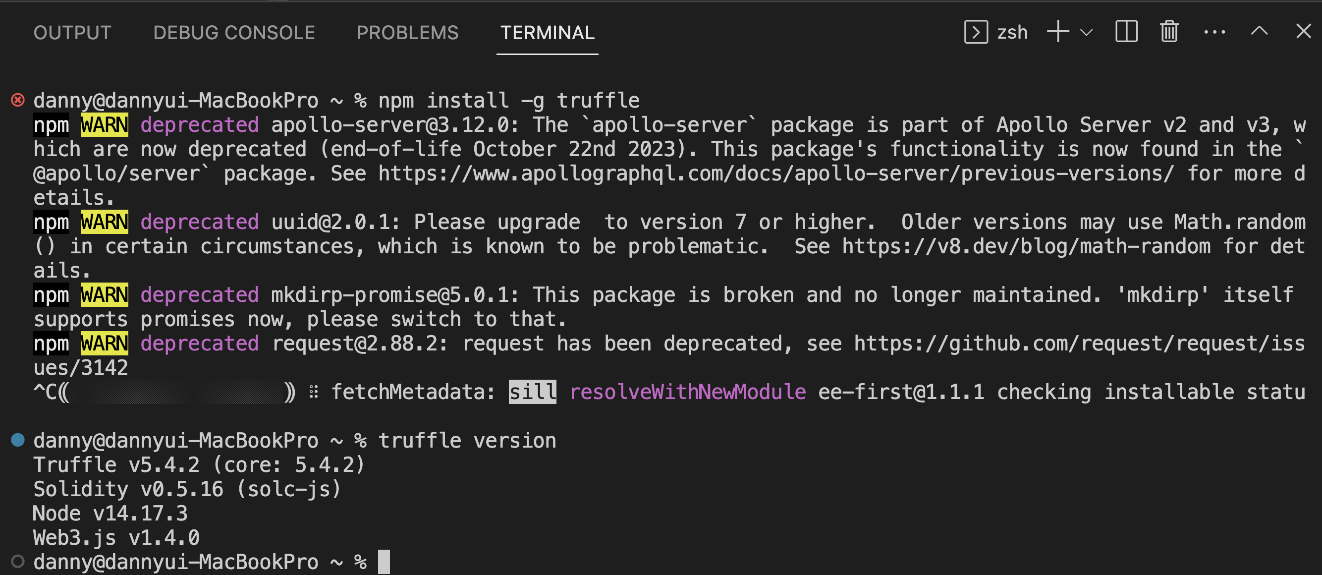 npm install -g truffle@5.4.2