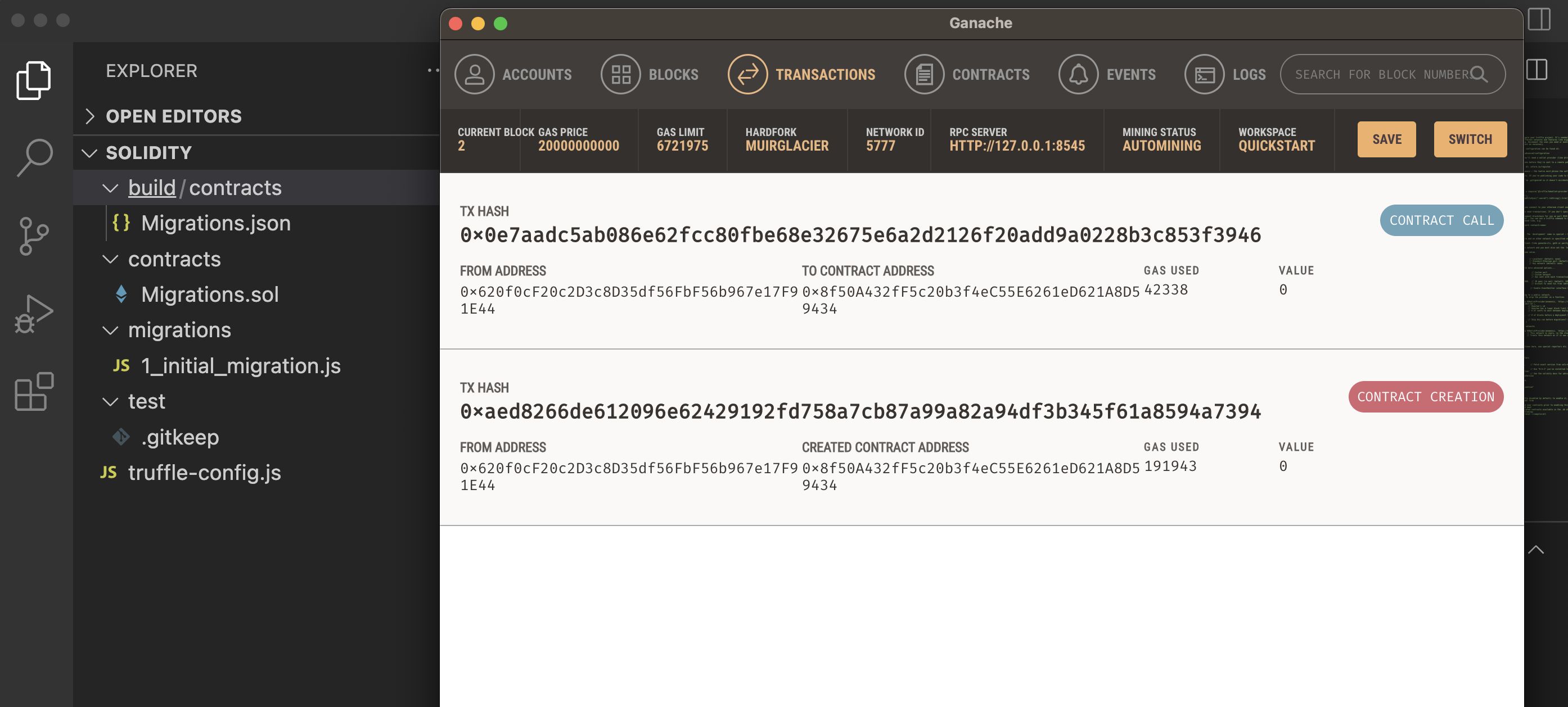 - Ganache에서 컨트랙트 생성 여부 학인.