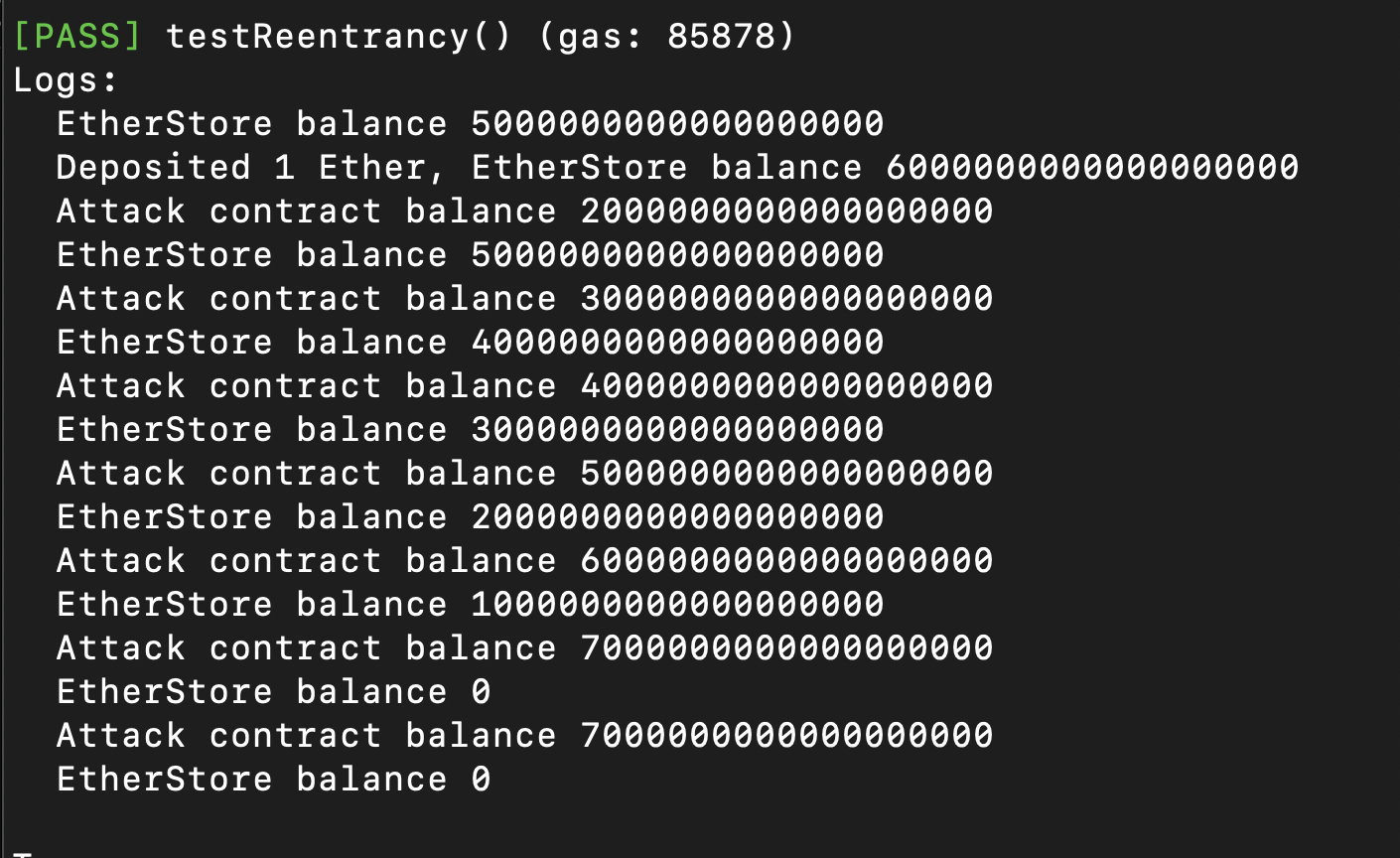 이로써 여러차례의 인출이 발생하고 EtherSotre 계약에서 모든 Ether가 흡수될 수 있음.