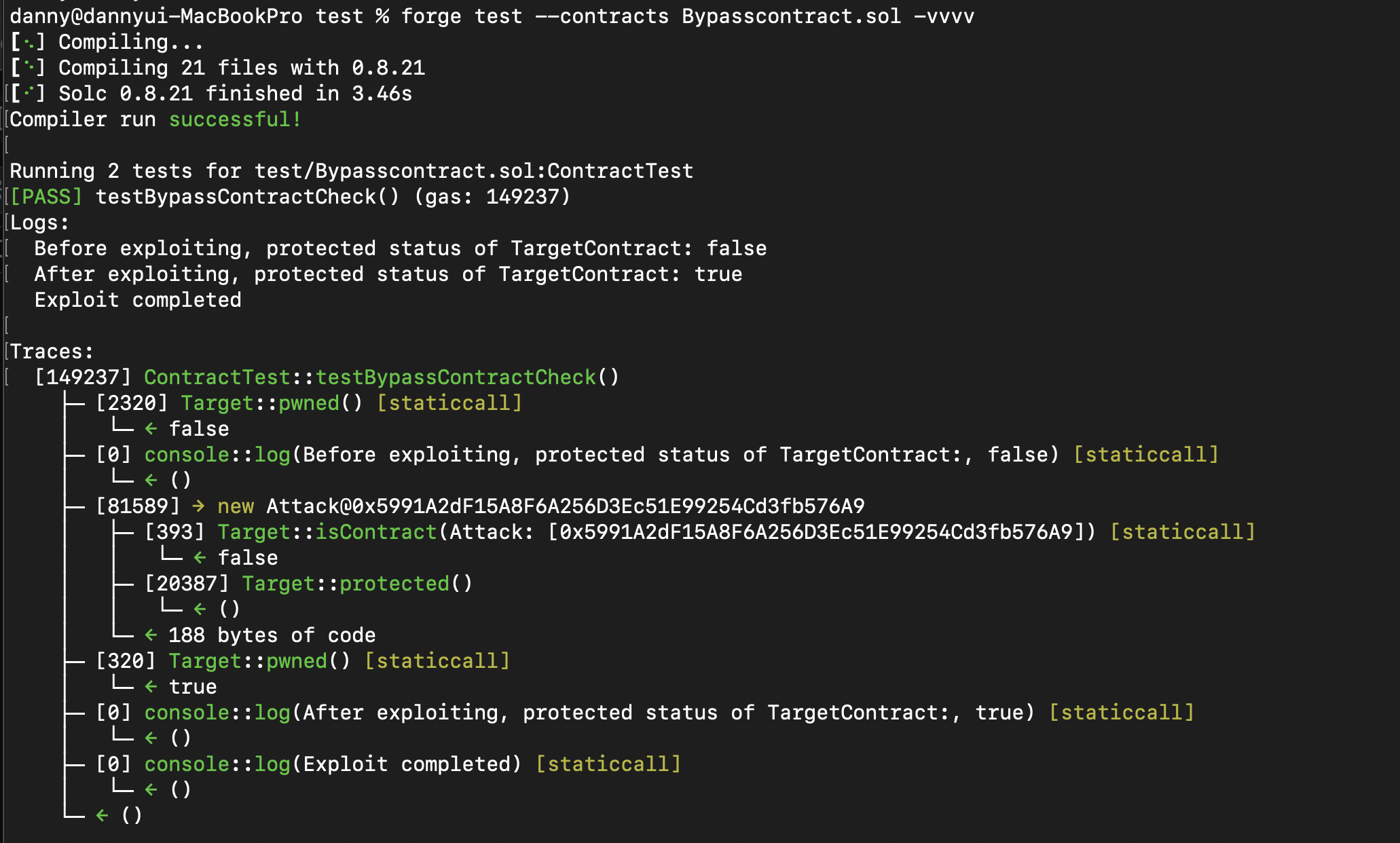 https://github.com/SunWeb3Sec/DeFiVulnLabs/blob/main/src/test/Bypasscontract.sol