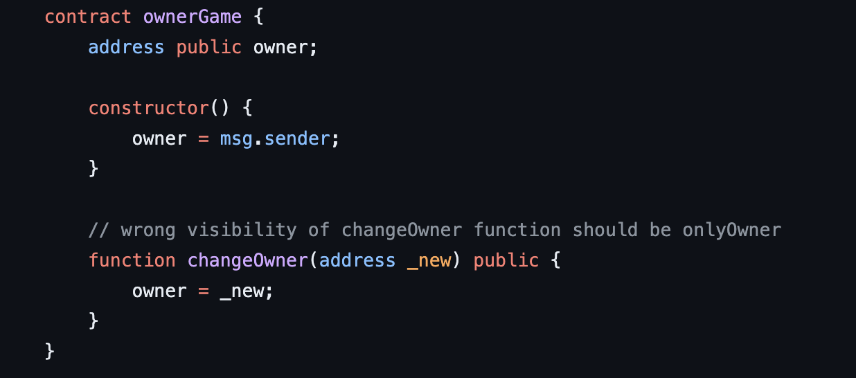 결과적으로 공격자는 이 함수를 호출하여 계약의 소유권을 변경하고 제어를 얻을 수 있음