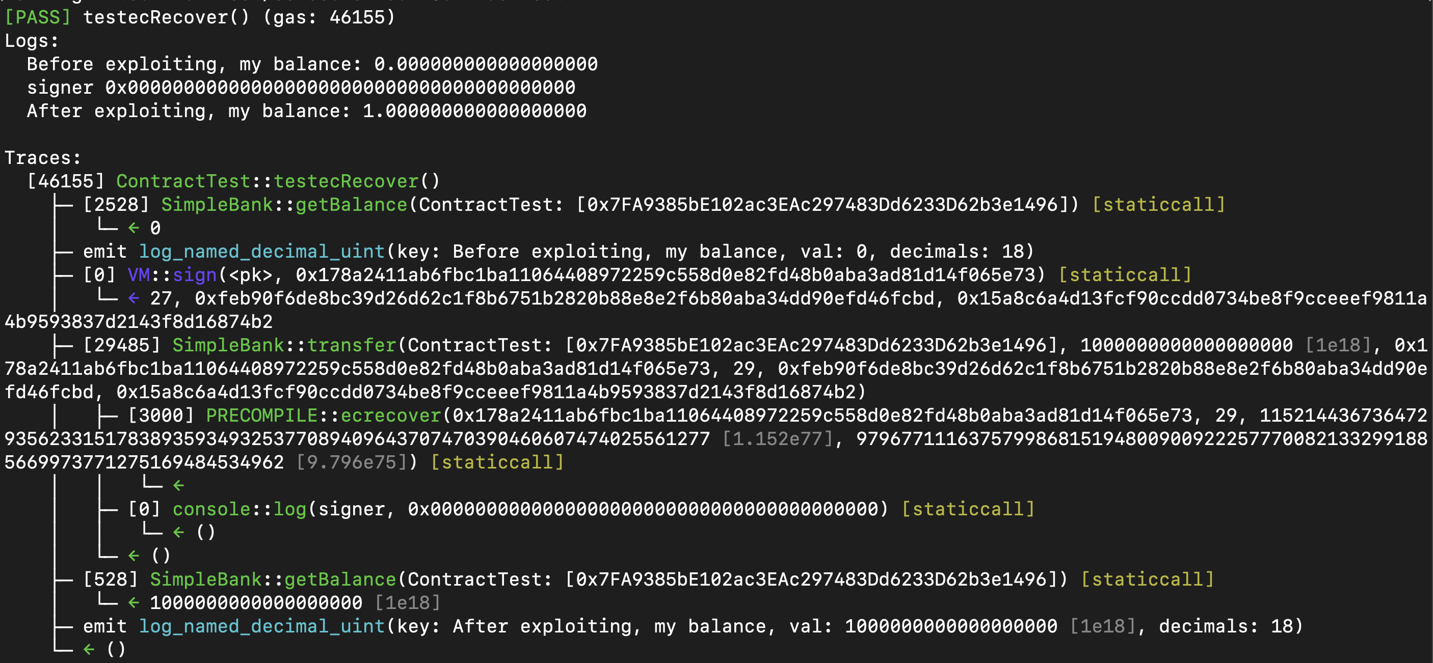 취약점은 ecRecover 함수가 서명 매개변수가 잘못된 경우에 0x0주소를 반환할 수 있다는 점