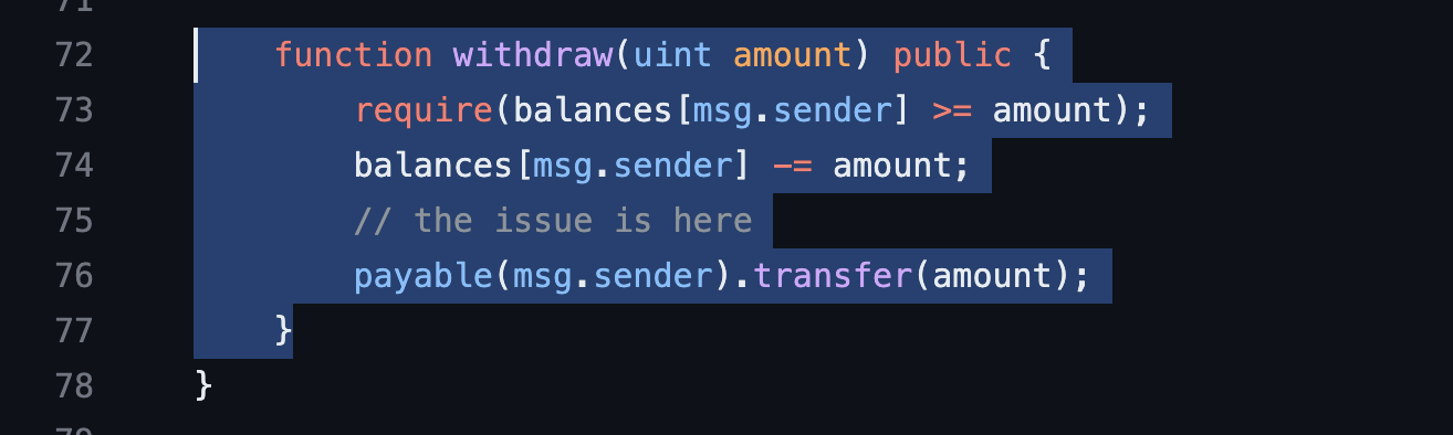 ETH를 수신자에게 전송할때, 솔리디티의 transfer() 또는 send() 매서드를 사용하는 경우 특정한 결함이 발생할 수 있는데, 특히 수신자가 스마트계약인 경우임.