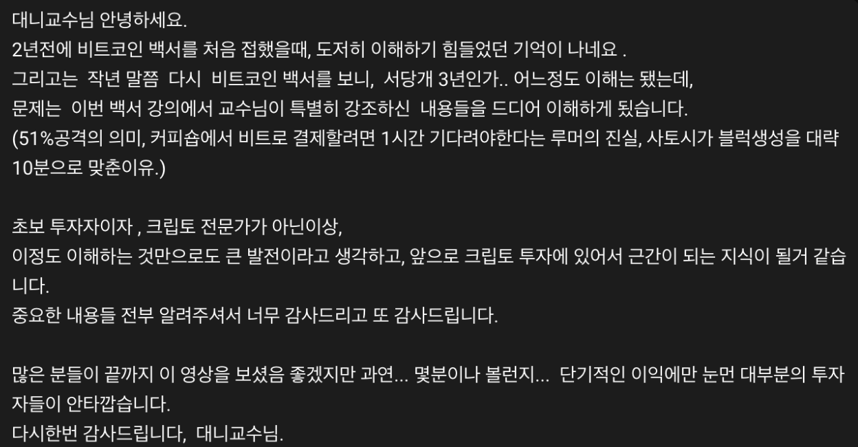 유튜브에 잠깐 공개되었던 강의를 통해서 찐 후기를 남겨주신 분도 계시다!!