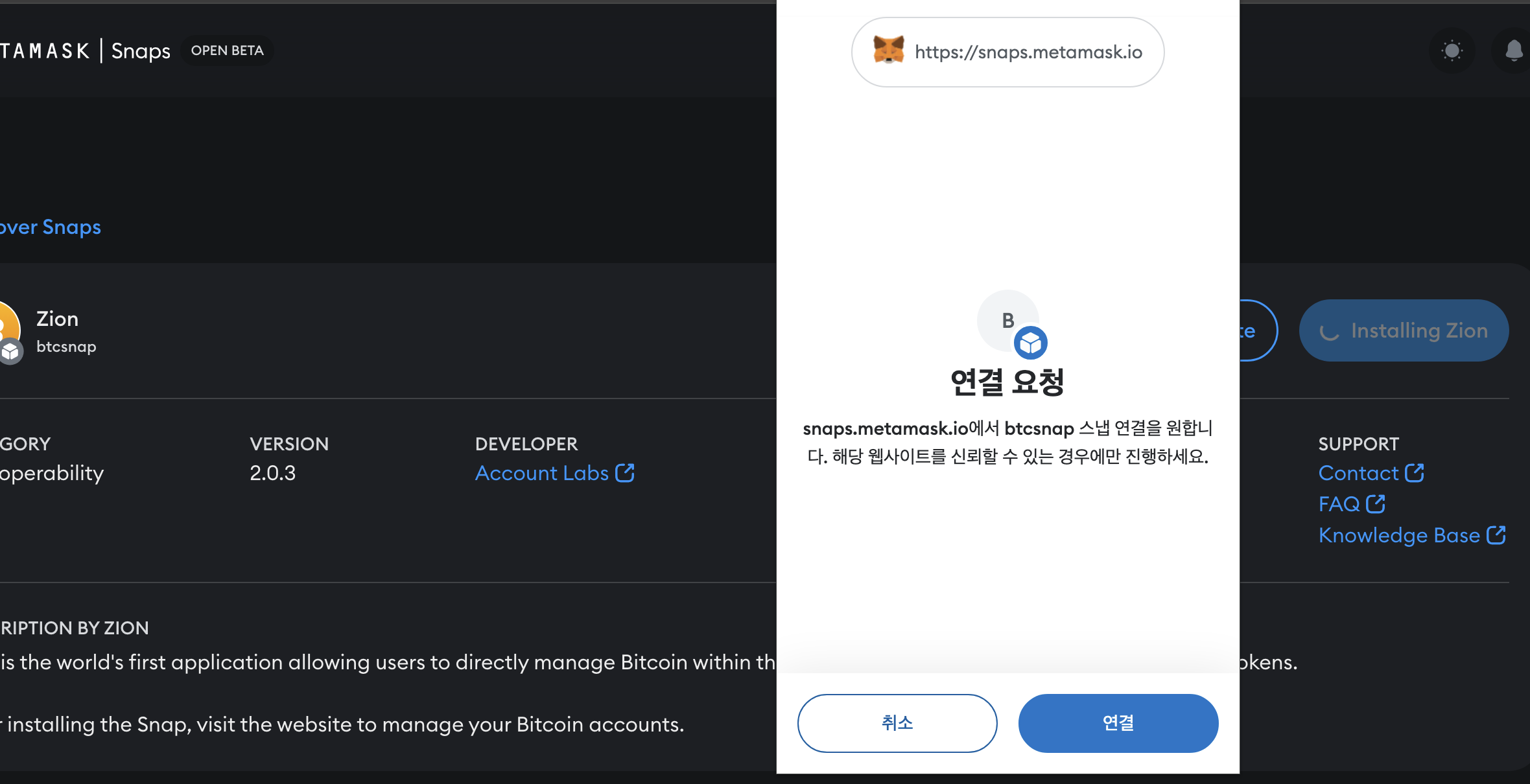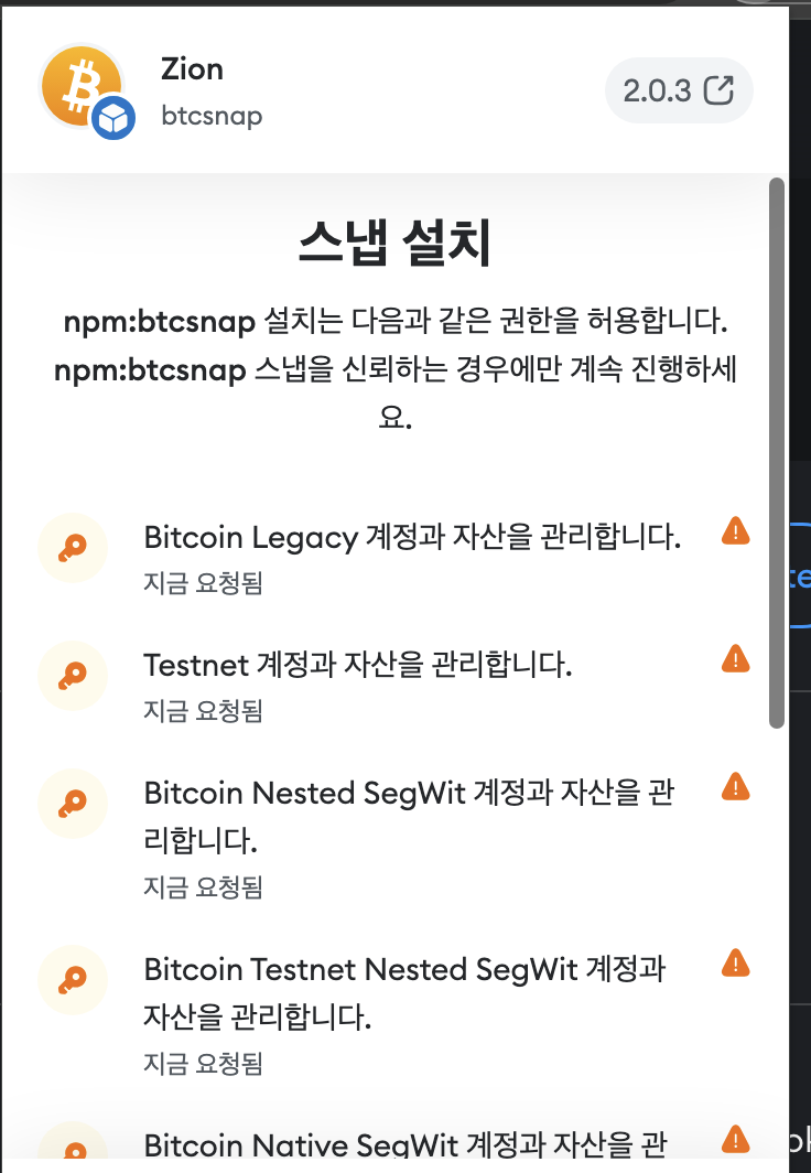 - Zion 이 메타마스크에서 비트코인 지갑으로 사용이 가능하다.