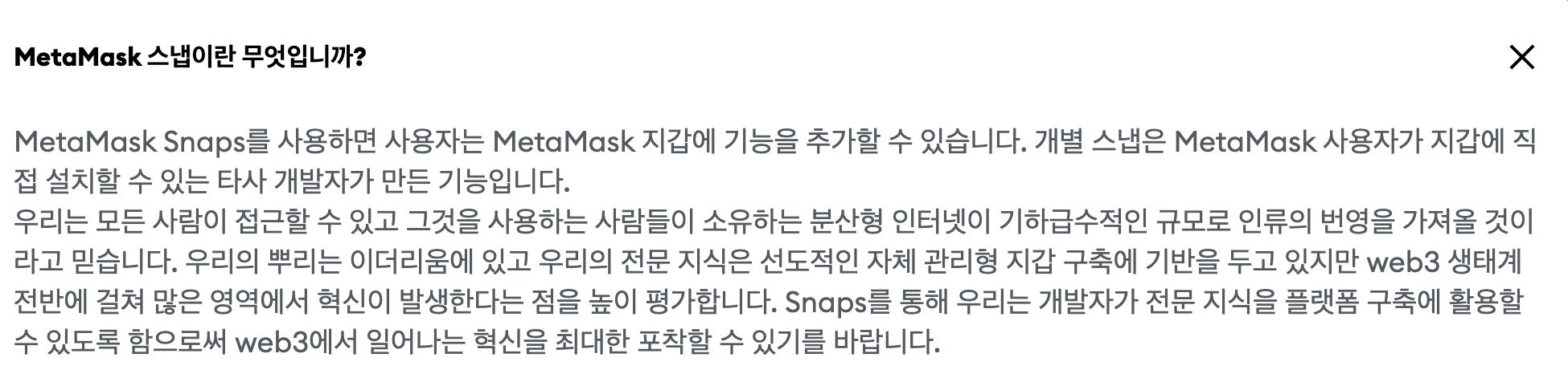 - 즉 메타마스크가 스냅을 열어주고, 그 스냅안에서 자유롭게 개발자들이 프로그램을 올릴 수 있다.