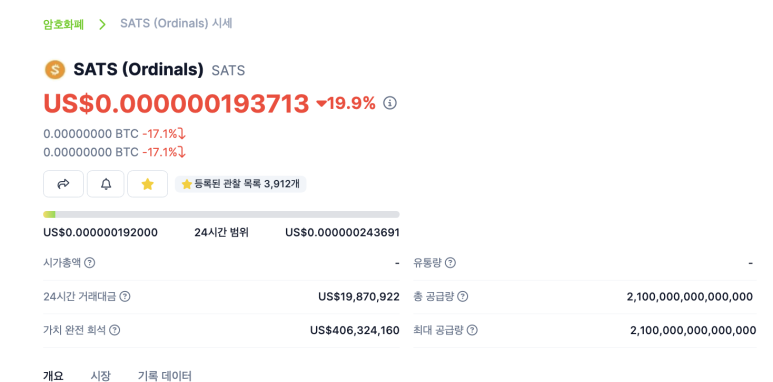 2.비트코인 오디널스 BRC20 SATS 떡상!