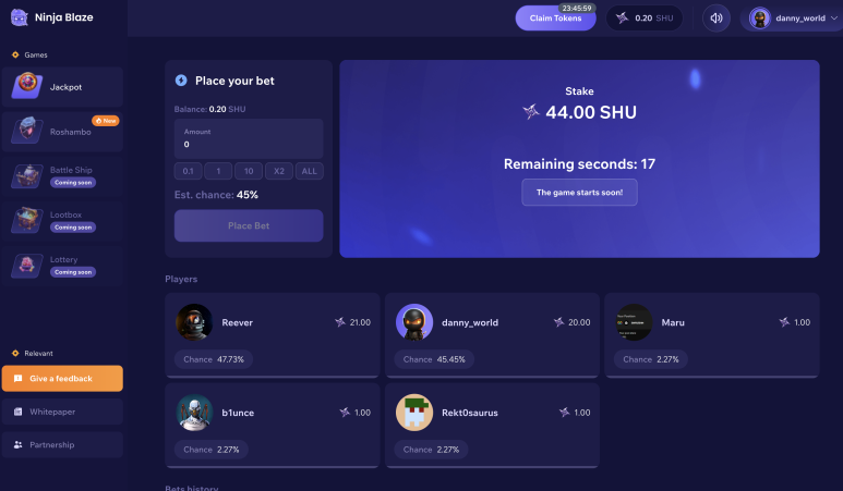 - 24시간마다 토큰 클레임이 가능하고 게임은 2종류가 있네요