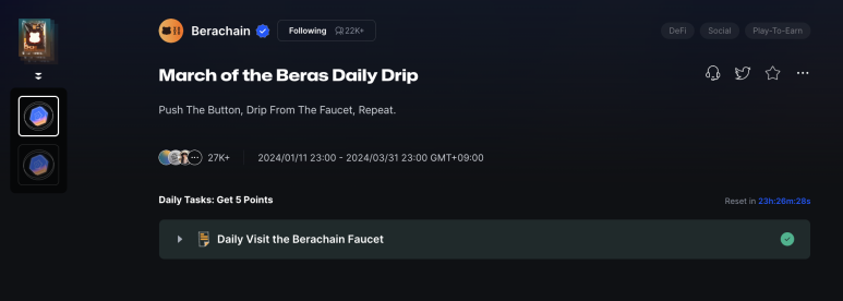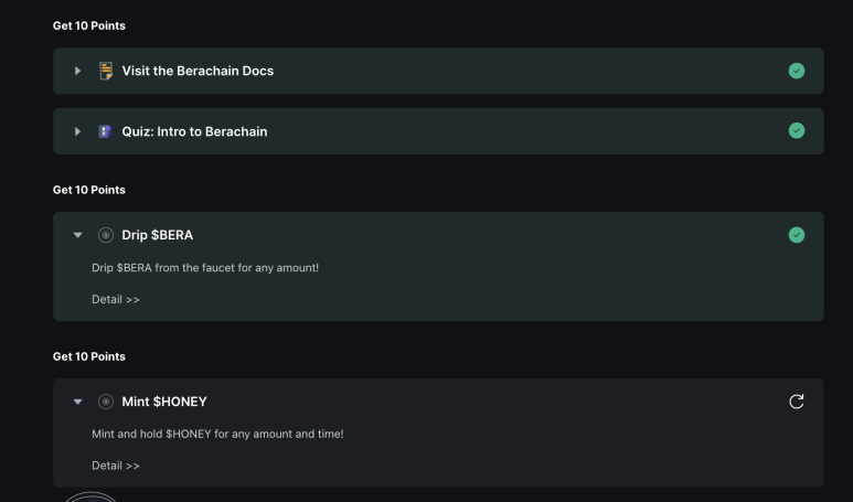 - 아래 미션들 중 Bera Club Role은 (디코에서 자격 얻어야 함)